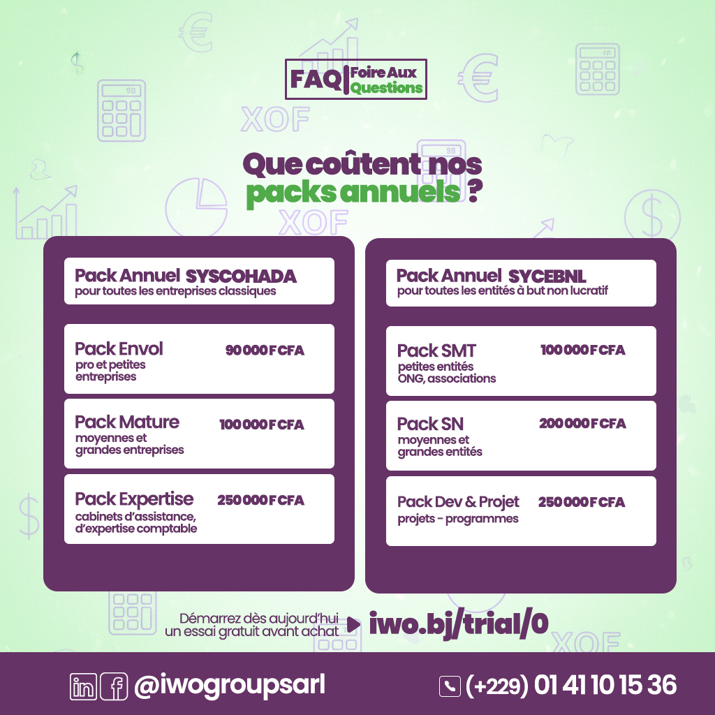👉 Prenez un des packs d'abonnement annuel IWO.BJ, la solution 100% en ligne po...
