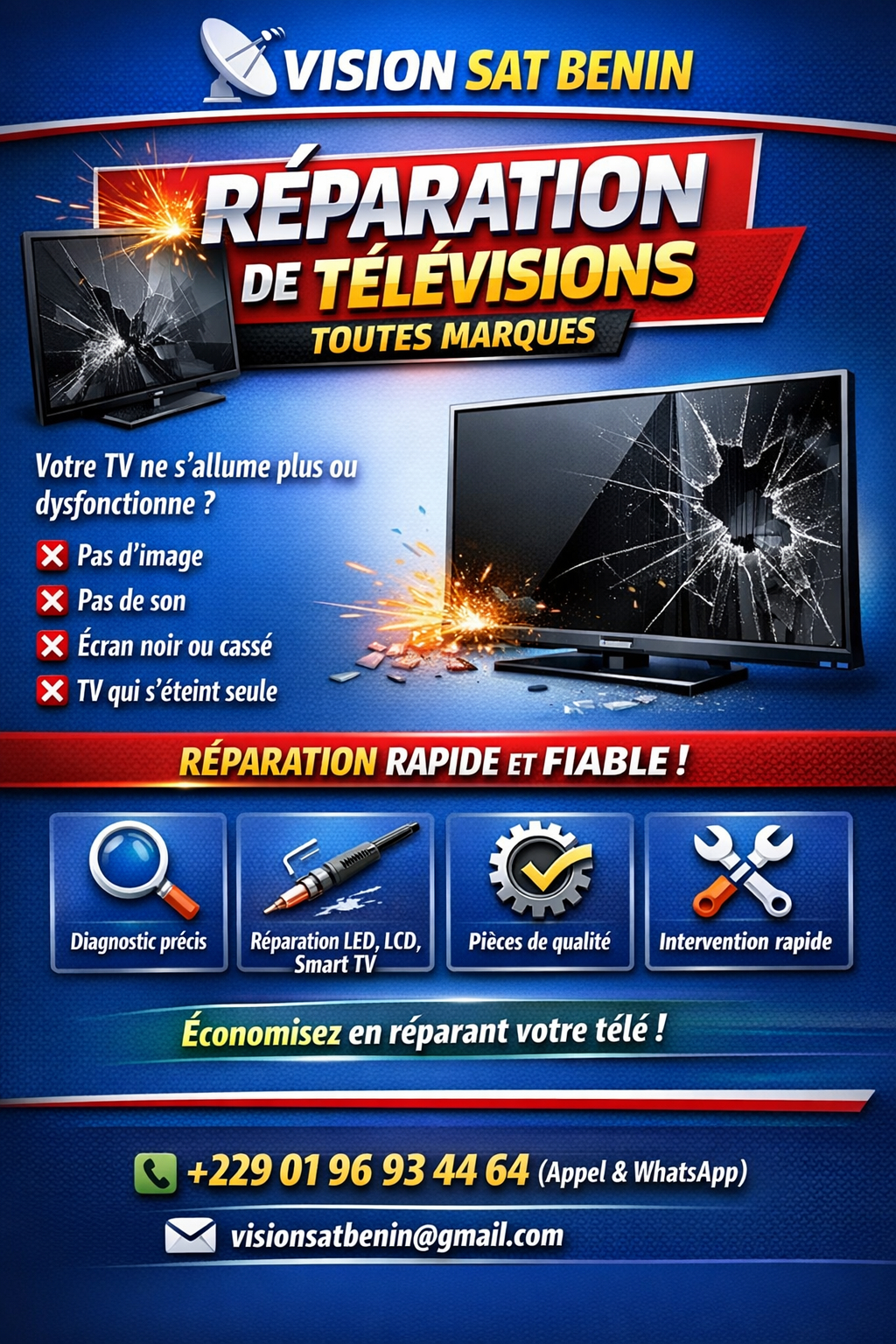 Vision Sat Bénin Nous installons des solutions innovantes en vidéosurveillance, antennes paraboliques, systèmes d’alarme, contrôle d’accès et énergie solaire. Sécurité, performance et fiabilité sont au cœur de nos services, pour les particuliers comme pour les entreprises.