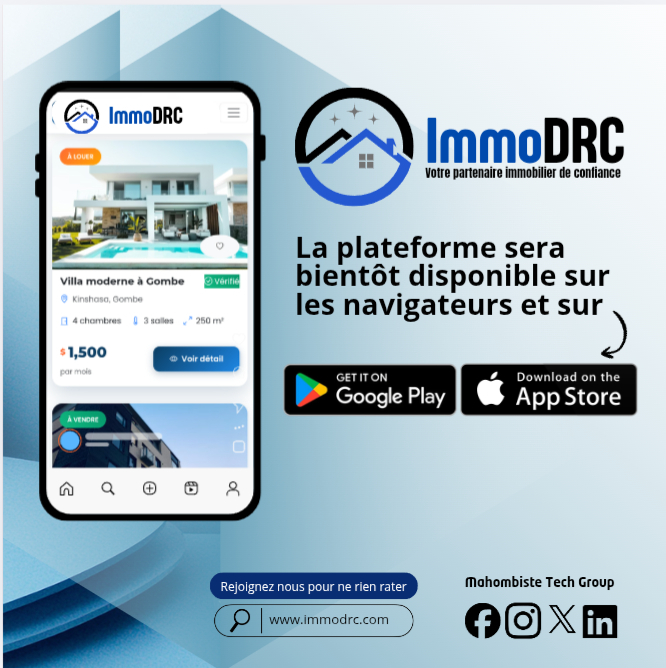 ImmoDRC – Une plateforme numérique dédiée à la recherche de biens immobiliers (locations, parcelles, maisons). Le projet vise à digitaliser le secteur immobilier en RDC, avec intégration de Flutter, Firebase, géolocalisation et automatisation du processus d’abonnement.