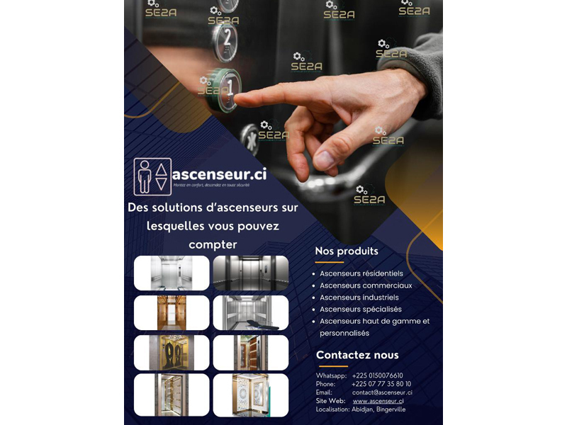 SE2A ASCENSEURS – Société d’Équipement Afrique Ascenseur est une entreprise spécialisée dans la fourniture, l’installation et la maintenance d’ascenseurs en Côte d’Ivoire.