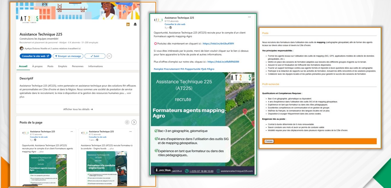 - Publication des offres sur internet, les réseaux sociaux et plateformes professionnelles.