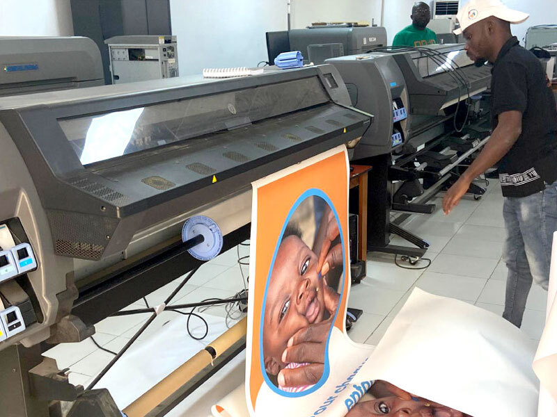 - Impression numérique : affiches, flyers, brochures, catalogues, cartes de visite, banderoles, kakemonos, bâches publicitaires.