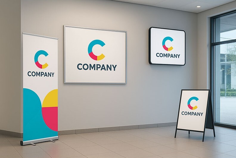 - Signalétique et PLV : panneaux, enseignes lumineuses, totems, stickers, marquages véhicules, décoration d’espaces commerciaux.