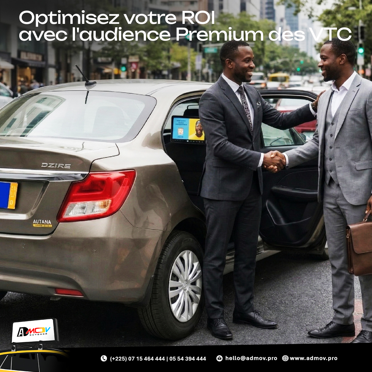 L’affichage numérique mobile (DOOH) révolutionne la publicité de proximité. En installant nos écrans dans les flottes de VTC les plus prisées, nous offrons aux marques une porte d'entrée directe vers une audience à fort pouvoir d'achat.