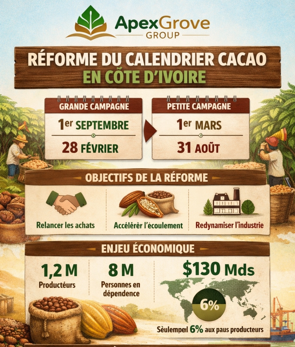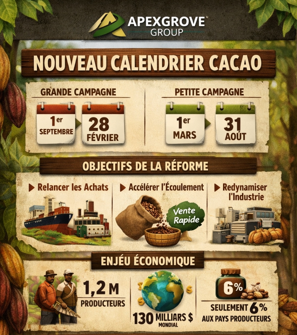 Cette dĂ©cision reflĂšte lâeffondrement des cours mondiaux du cacao observĂ© ces derniers mois sur les marchĂ©s internationaux.