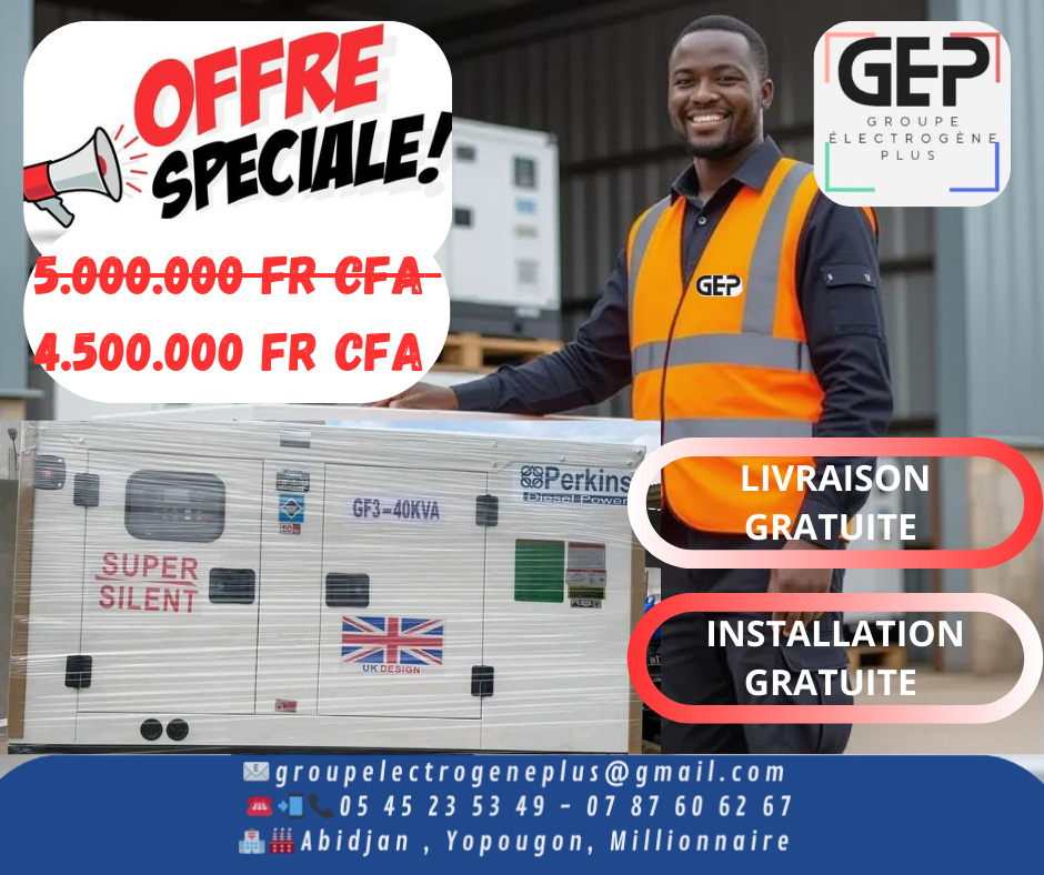 Découvrez notre gamme de groupes électrogènes diesel de haute qualité, idéaux pour les usages domestiques, industriels ou de secours. Disponibles en puissances variées (de 5 à 50 kVA), ces générateurs offrent une autonomie prolongée, un démarrage automatique et une faible consommation de carburant. Fabriqués avec des composants robustes pour résister aux conditions africaines. Prix compétitifs à partir de 250.000 fr cfa, avec options de livraison dans toute l'Afrique. Contactez-nous pour un devis personnalisé !