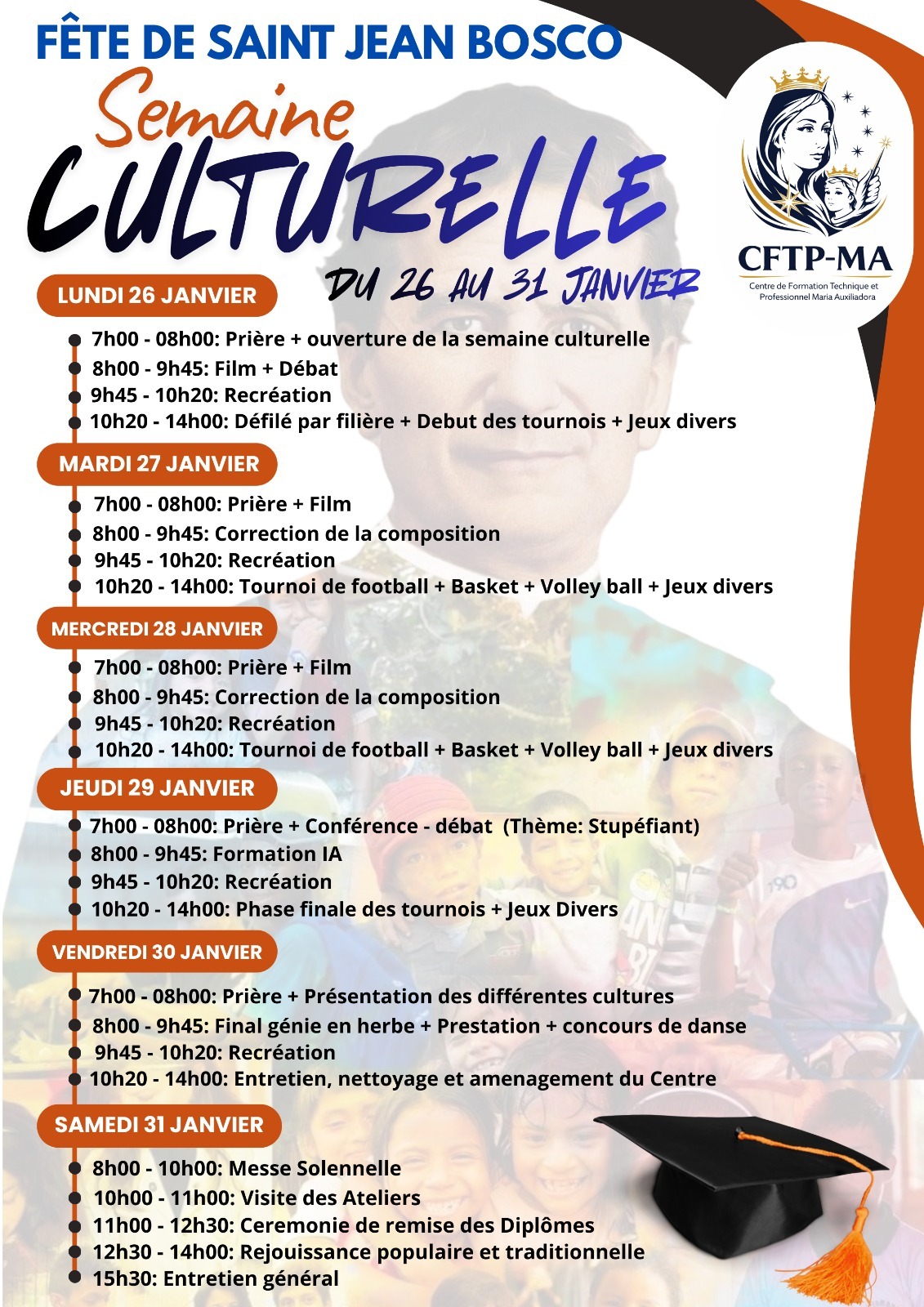 La semaine culturelle au CFTP-MA a commence et se poursuit selon le programme suivant