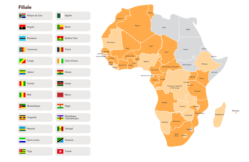 25 filiales et 14 partenaires en Afrique francophone, anglophone et lusophone.