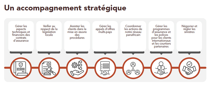 solutions et services d’assurance personnalisés. Que nos clients soient des entreprises classiques ou spécialisées, des particuliers, des réassureurs, des sociétés de placement, des entreprises investissant en Afrique ou des courtiers internationaux sans présence sur le continent, nous les aidons à gérer efficacement leurs risques à travers toute l’Afrique. Face à ces enjeux, notre équipe conçoit des solutions innovantes et offre un accompagnement sur mesure.