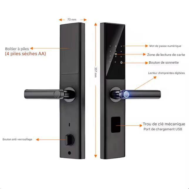 Nos serrures à empreintes digitales combinent :