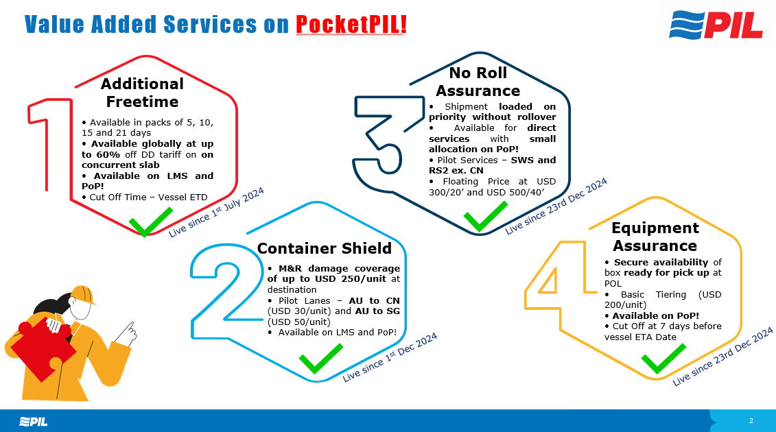 Outre son activité principale, PIL possède également plusieurs autres unités qui sont présentes dans la logistique et la fabrication de conteneurs.