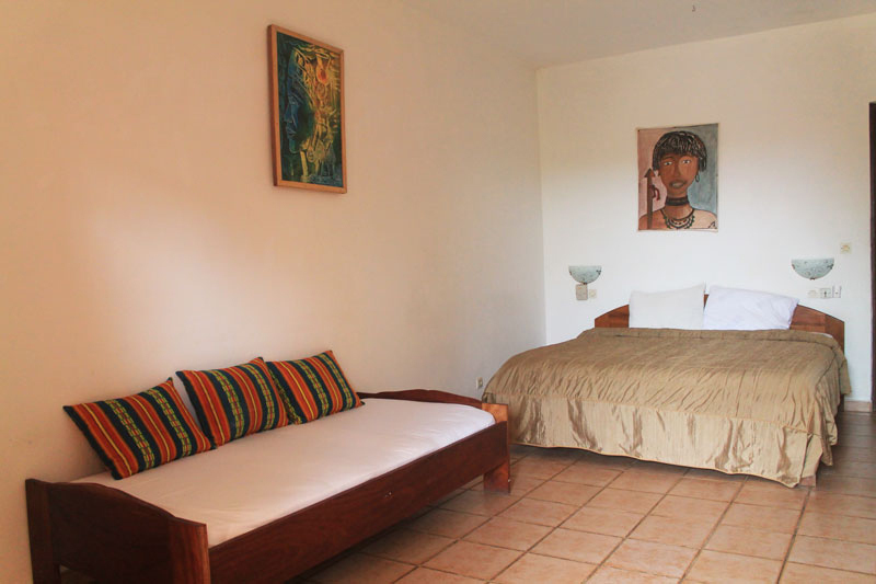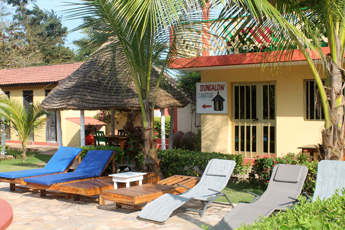 À quelques mètres seulement de la plage, les clients peuvent marcher pieds nus sur le sable togolais et profiter des eaux de l’océan Atlantique.