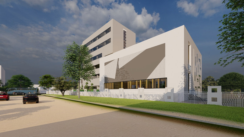 - Immeuble R+5 : bureaux, archives, conférence, cantine