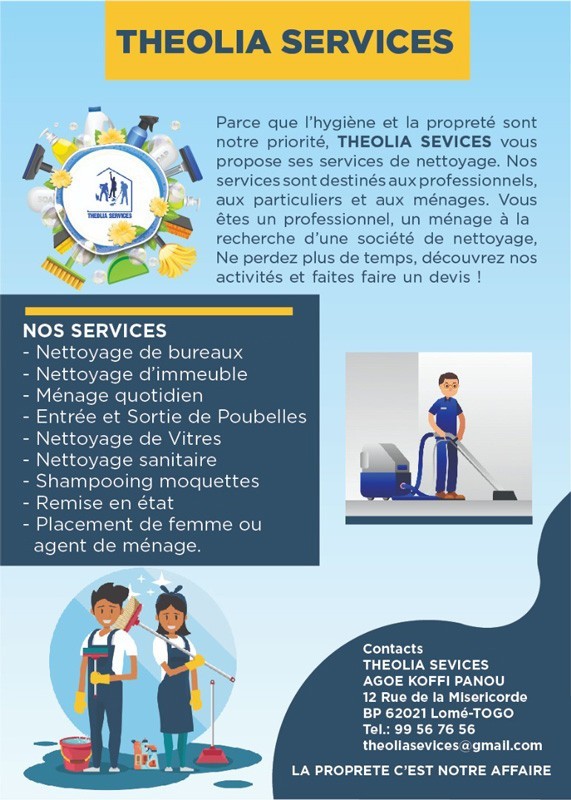 Nettoyage complet : lavage des sols, des vitres, dépoussiérage des fenêtres et portes, salles de bain, cuisine, robinetteries, miroirs, meubles encastrés, lustres, nettoyage des parkings (dépoussiérage, balayeuse, etc);