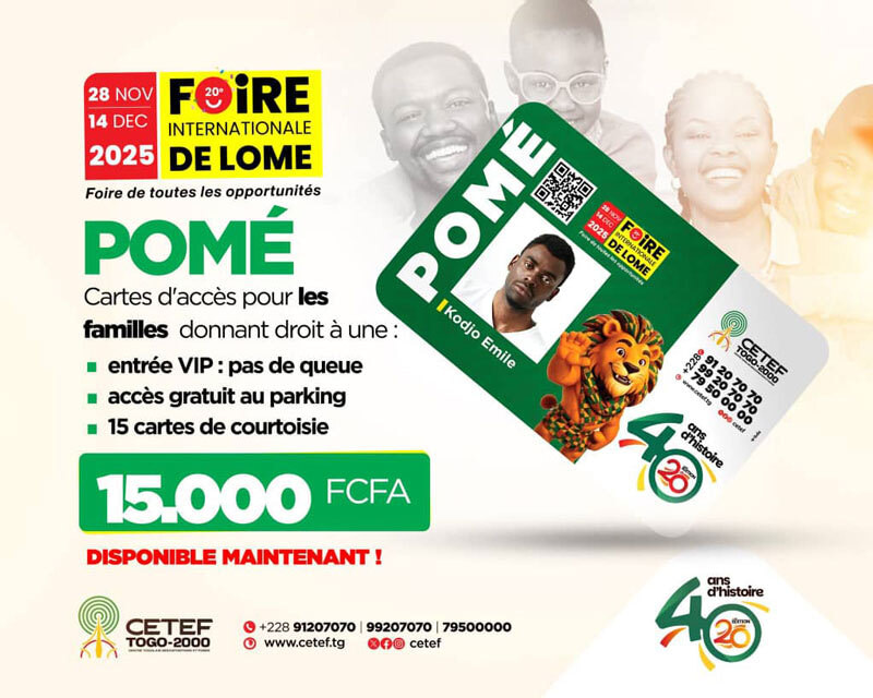 28 novembre au 14 décembre 2025 sur le site du Centre Togolais des Expositions et Foires (CETEF - TOGO 2000).