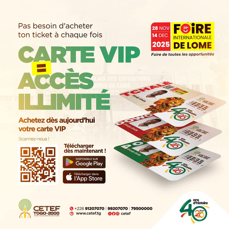 Cet événement majeur, organisé par le CETEF-TOGO 2000, est un carrefour incontournable pour les entreprises et professionnels de tous secteurs d'activité en Afrique de l'Ouest.